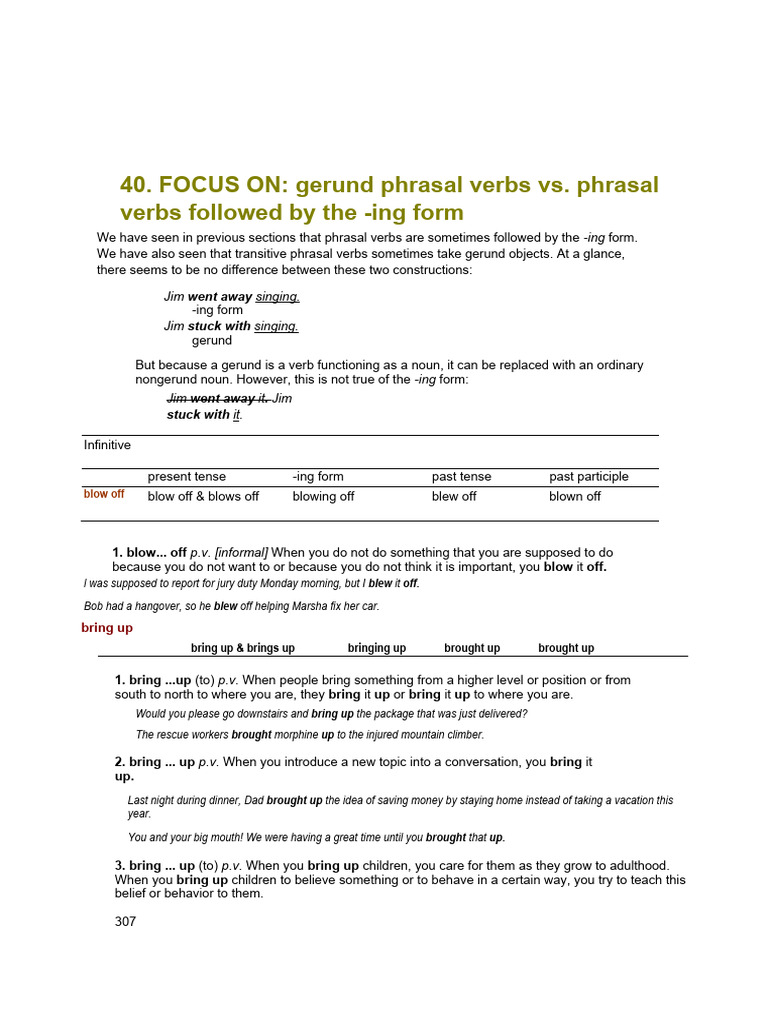 We have seen in previous sections that phrasal verbs are sometimes followed by the -ing form.
