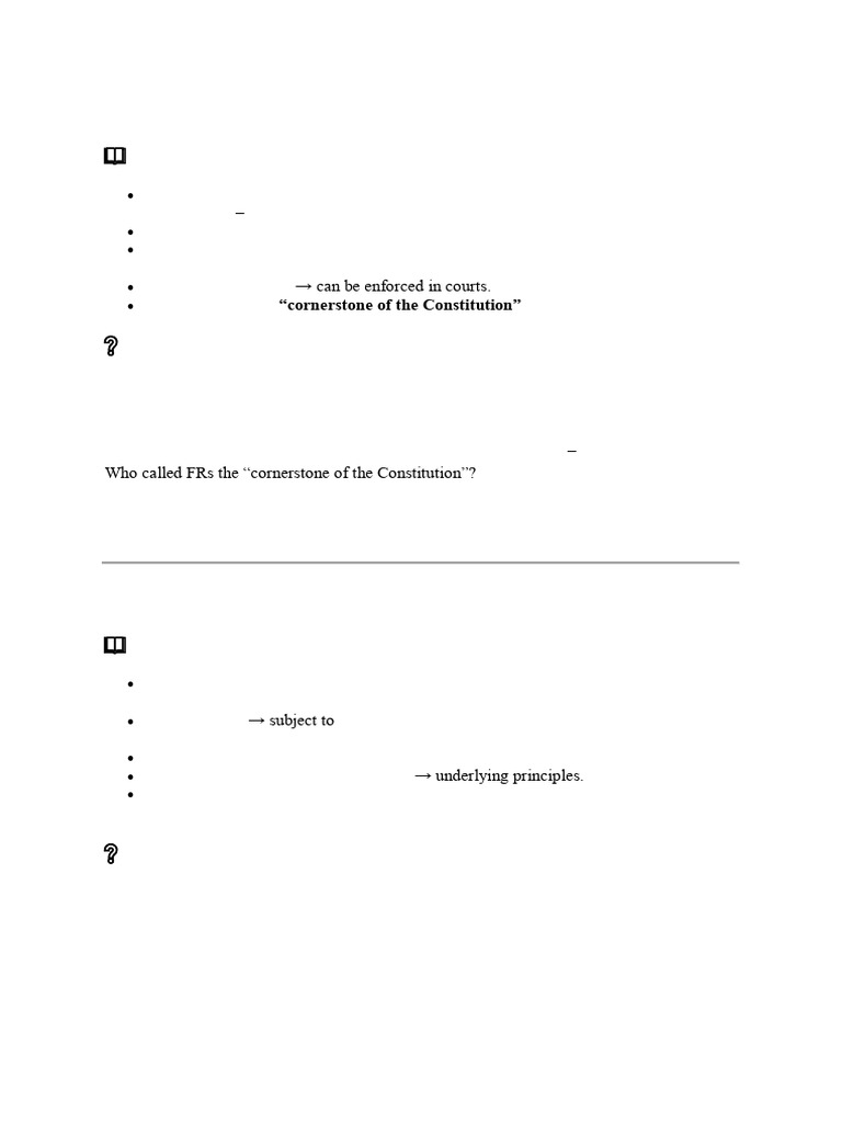 FRs are called the “cornerstone of the Constitution” (Granville Austin).