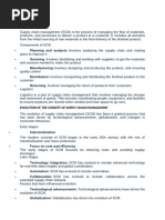 As this shift has taken place, the importance of managing and coordinating the activities between these disparate entities has become paramount. Today that effort is often referred to as Supply Chain Management or SCM for short. SCM can be defined as achieving a sustainable competitive position and maximizing shareholder value by optimizing the relationship of process, information, and physical goods among internal and external trading partners. This optimization process involves the following activities: 1. 2. 3. 4. 5. 6. 7. Customer Demand Planning Customer Order Fulfillment and Customer Service Strategic Sourcing and Procurement Production Logistics Distribution Networks and Warehouse Management Transportation and Shipment Management Integrated Supply and Demand Planning