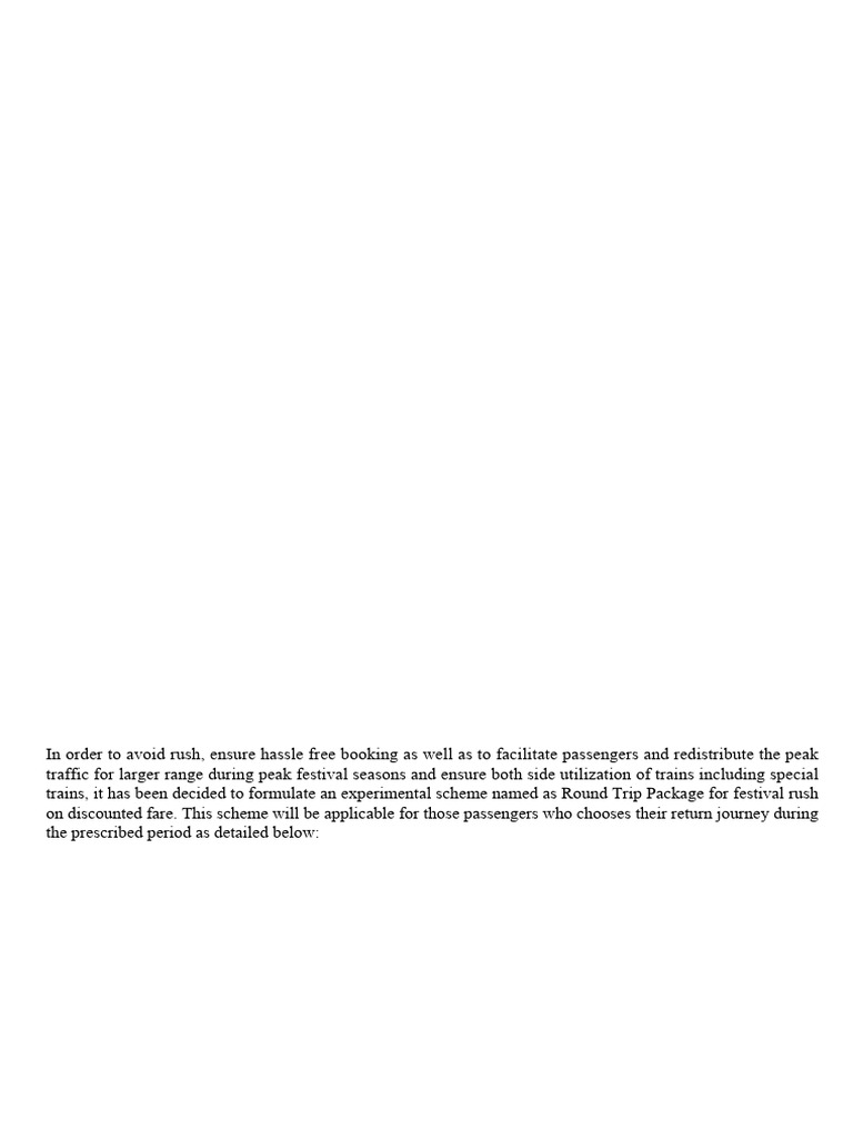 trains, it has been decided to formulate an experimental scheme named as Round Trip Package for festival rush