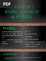 force. • Formula: W = F · d · cosθ, where: - F = applied force - d = displacement - θ = angle between