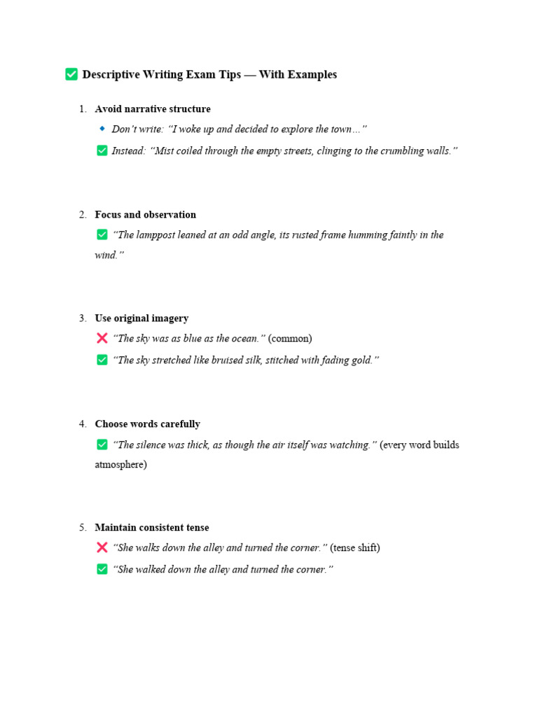 Descriptive Writing Exam Tips — With Examples