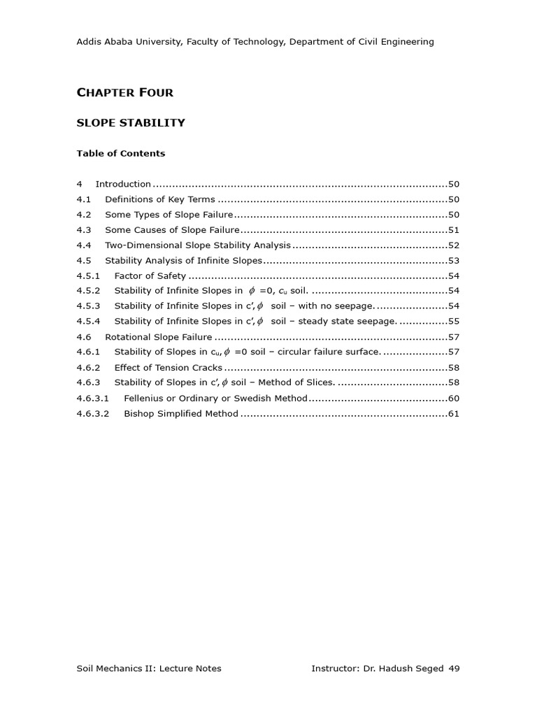 Soil Mechanics II: Lecture Notes Instructor: Dr. Hadush Seged 49