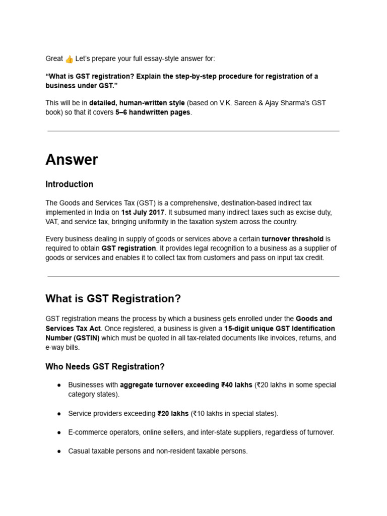 “What is GST registration? Explain the step-by-step procedure for registration of a