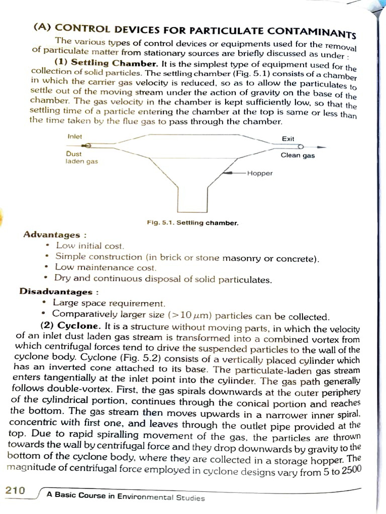 collection of solid particles. The settling chamber (Fig. 5.1) consists of a chamber