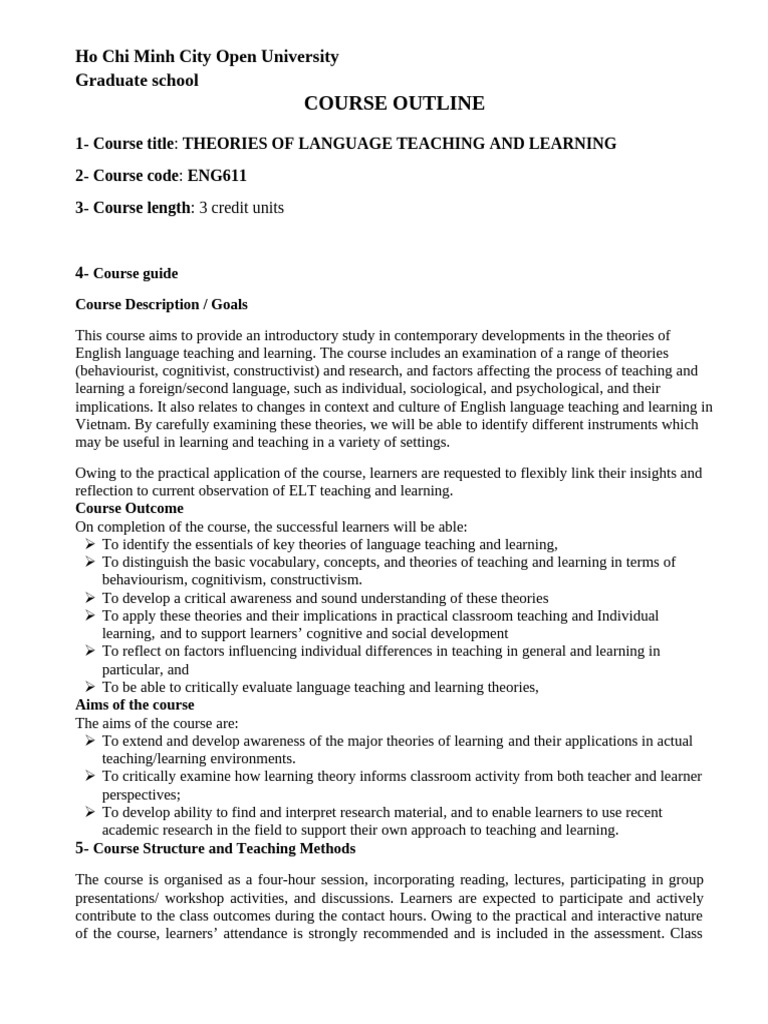 1- Course title: THEORIES OF LANGUAGE TEACHING AND LEARNING