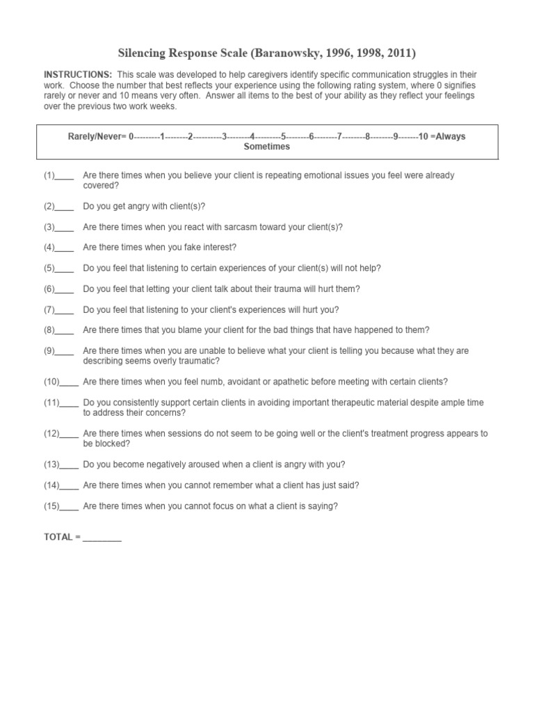 Silencing Response Scale (Baranowsky, 1996, 1998, 2011)