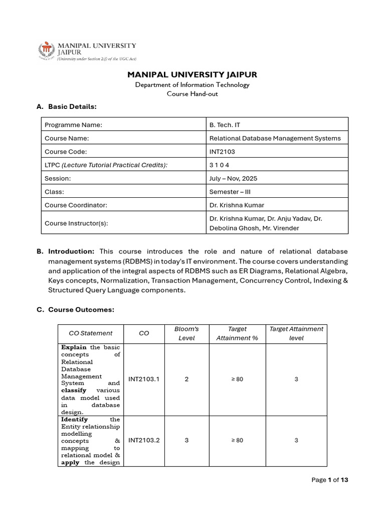 INT2103 RDBMS Course Handout