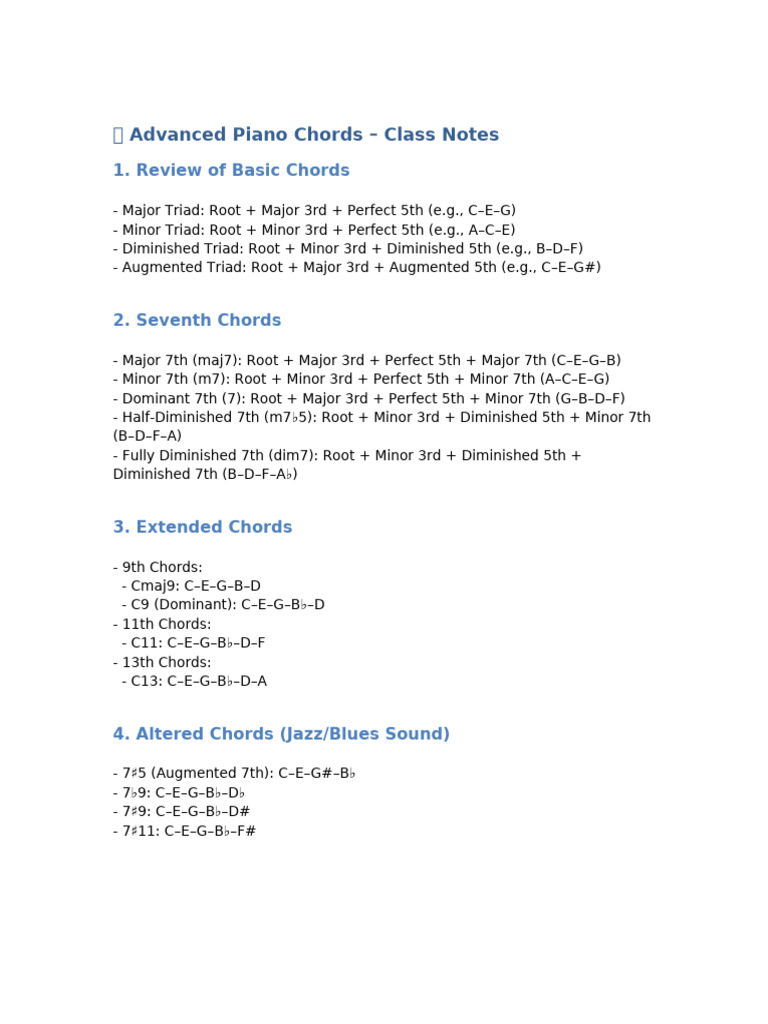 🎹 Advanced Piano Chords – Class Notes
