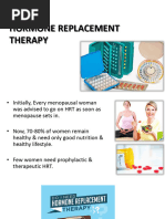 HRT replaces estrogen and progesterone after menopause. It can be taken as tablets, patches, gels, or