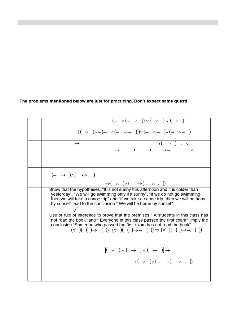 5. (i) Use of rule of inference to prove that the premises “ A students in this class has