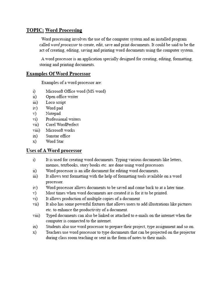 ix) Students also use word processor to prepare their project, type assignment and so on.