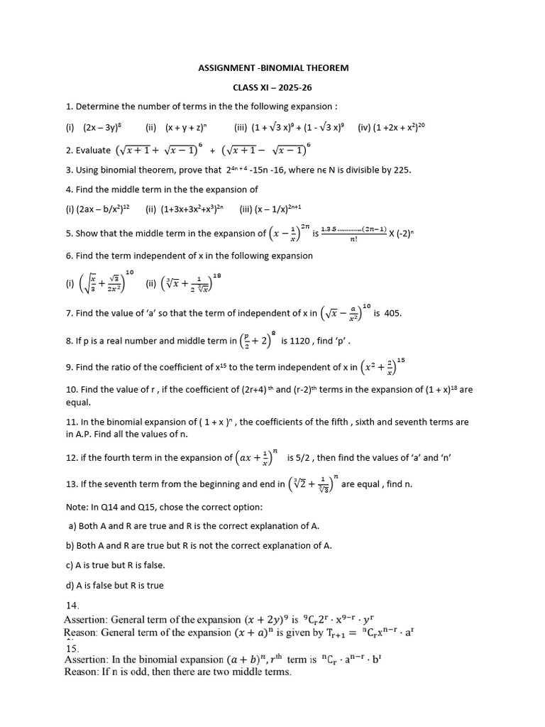 3. Using binomial theorem, prove that 24n + 4 -15n -16, where nϵ N is divisible by 225.