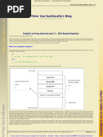 // To compile: CL ShowSehFrames.CPP //================================================== #define WIN32_LEAN_AND_MEAN #include <windows.h> #include <stdio.h> #pragma hdrstop //---------------------------------------------------------------------------// !!! WARNING !!! This program only works with Visual C++, as the data // structures being shown are specific to Visual C++. //---------------------------------------------------------------------------#ifndef _MSC_VER #error Visual C++ Required (Visual C++ specific information is displayed) #endif //---------------------------------------------------------------------------// Structure Definitions //---------------------------------------------------------------------------// The basic, OS defined exception frame struct EXCEPTION_REGISTRATION { EXCEPTION_REGISTRATION* prev; FARPROC handler; }; // Data structure(s) pointed to by Visual C++ extended exception frame struct scopetable_entry { DWORD previousTryLevel; FARPROC lpfnFilter; FARPROC lpfnHandler; }; // The extended exception frame used by Visual C++ struct VC_EXCEPTION_REGISTRATION : EXCEPTION_REGISTRATION { scopetable_entry * scopetable; int trylevel; int _ebp; }; //---------------------------------------------------------------------------// Prototypes //---------------------------------------------------------------------------// __except_handler3 is a Visual C++ RTL function. We want to refer to // it in order to print it's address. However, we need to prototype it since // it doesn't appear in any header file. extern "C" int _except_handler3(PEXCEPTION_RECORD, EXCEPTION_REGISTRATION *, PCONTEXT, PEXCEPTION_RECORD); //---------------------------------------------------------------------------// Code //---------------------------------------------------------------------------// // Display the information in one exception frame, along with its scopetable // void ShowSEHFrame( VC_EXCEPTION_REGISTRATION * pVCExcRec ) { printf( "Frame: %08X Handler: %08X Prev: %08X Scopetable: %08X\n", pVCExcRec, pVCExcRec->handler, pVCExcRec->prev, pVCExcRec->scopetable ); scopetable_entry * pScopeTableEntry = pVCExcRec->scopetable; for ( unsigned i = 0; i <= pVCExcRec->trylevel; i++ )