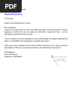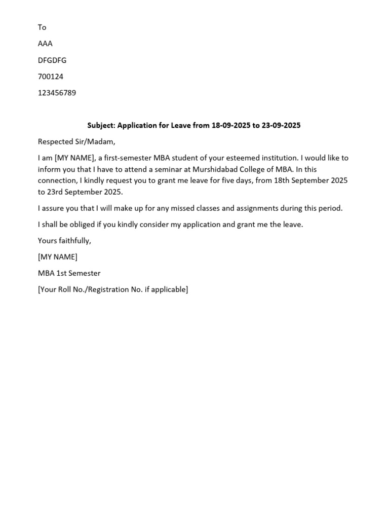 connection, I kindly request you to grant me leave for five days, from 18th September 2025