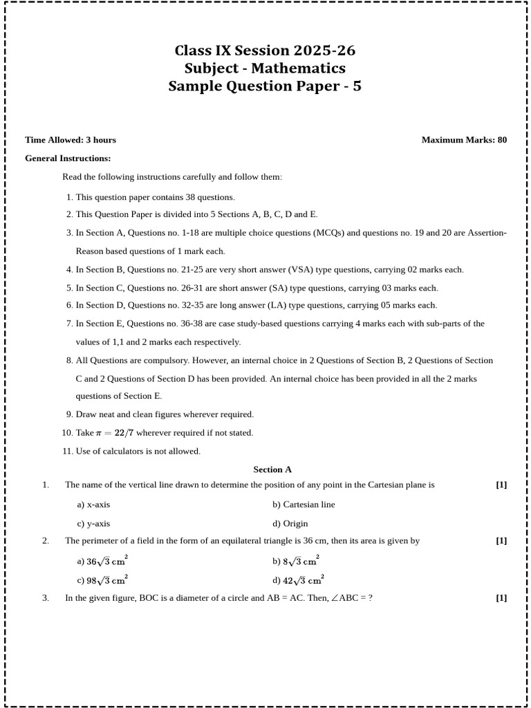 Class IX Session 2025-26 Subject - Mathematics Sample Question Paper - 5