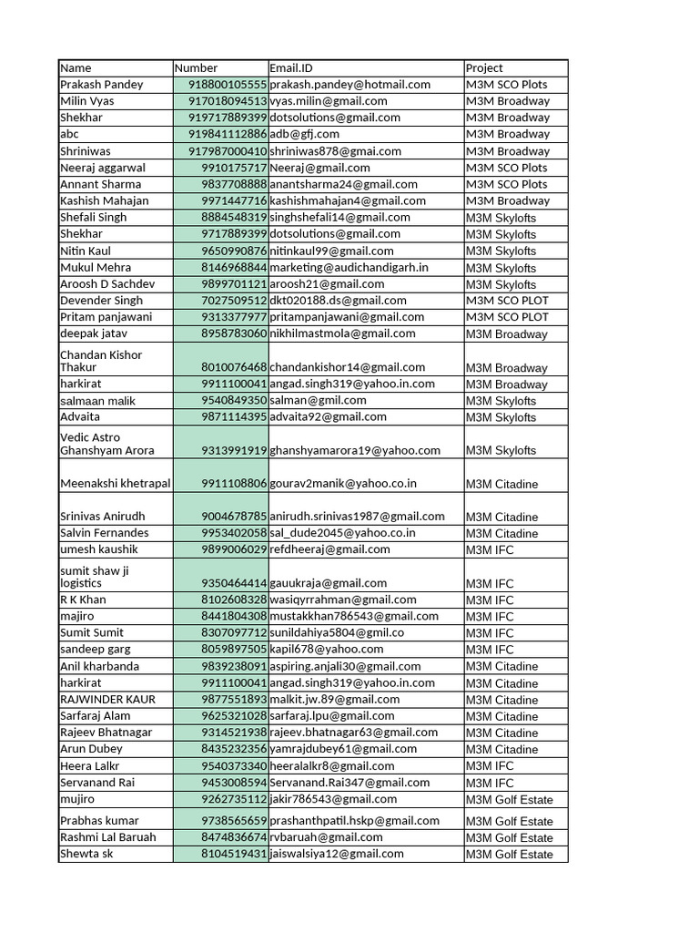 Jaggi 9822272663 jagchandra@[Link] m3m sco