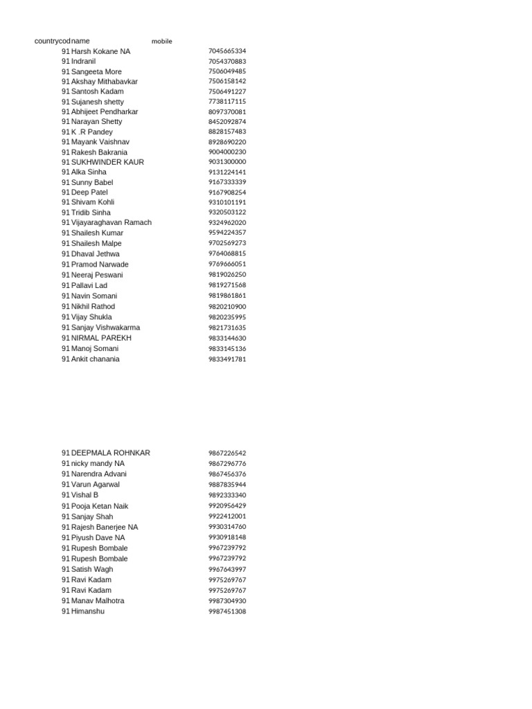 countrycodname mobile