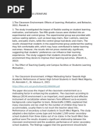 positive learning environment on student motivation and engagement (Mindo &