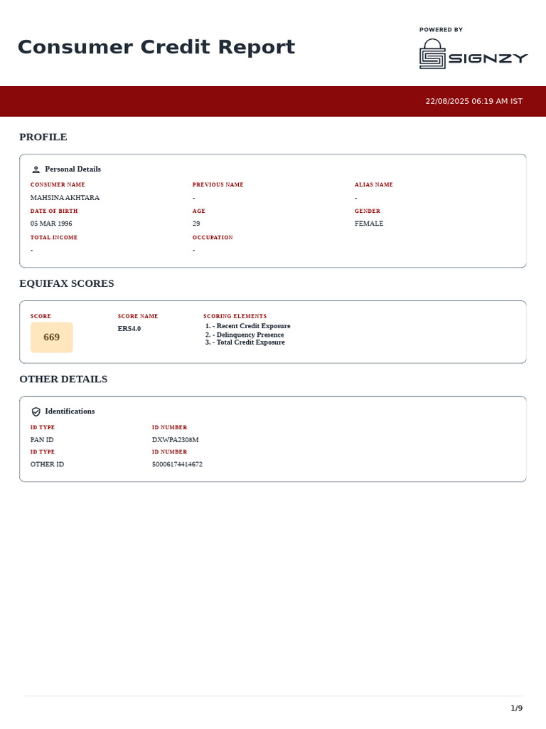 Consumer Credit Report