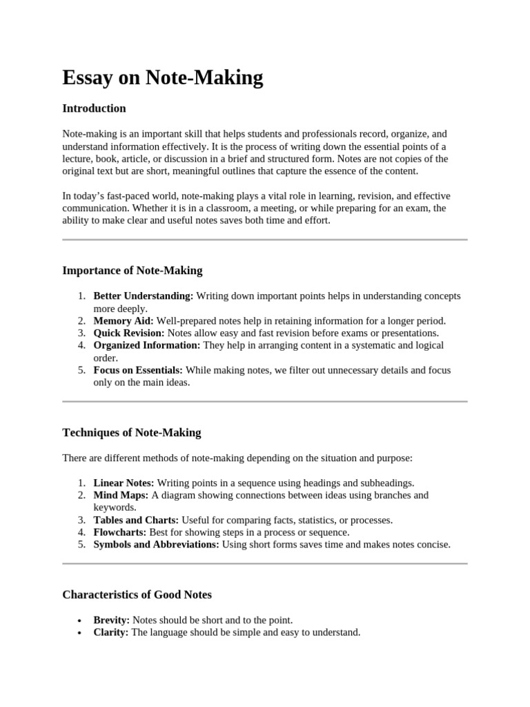 Essay on Note-Making