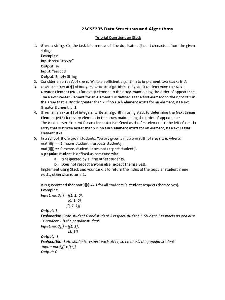 Tutorial Questions on Stack