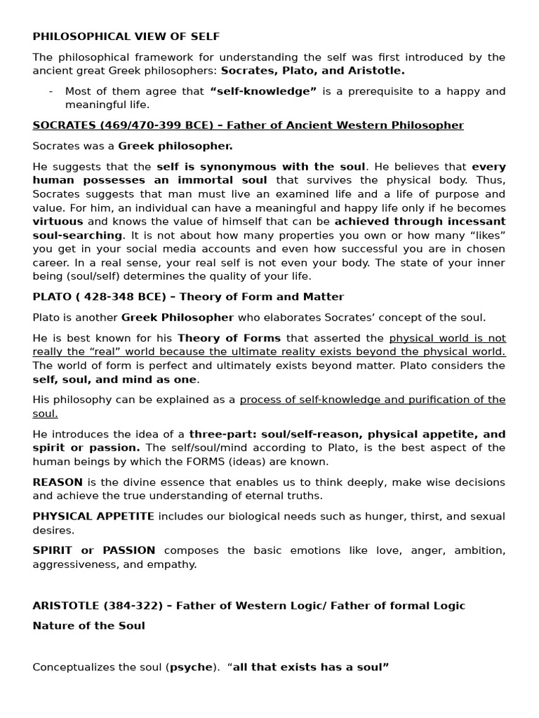 pursuit of wisdom seeks to understand the self by understanding” the soul and
