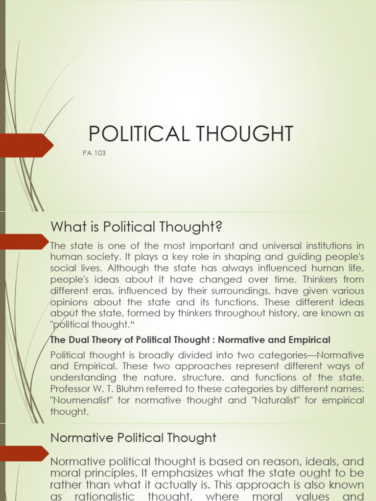 Political thought is broadly divided into two categories—Normative