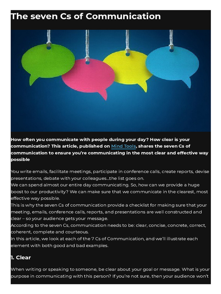 communication? This article, published on Mind Tools, shares the seven Cs of