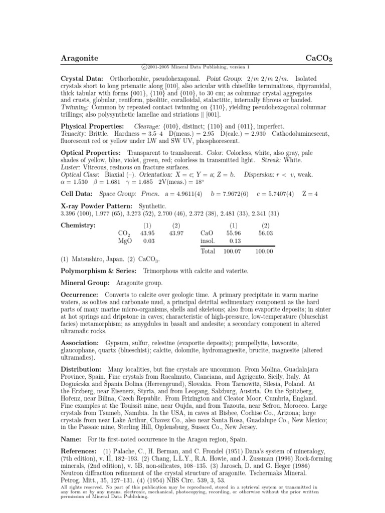 References: (1) Palache, C., H. Berman, and C. Frondel (1951) Dana’s system of mineralogy,