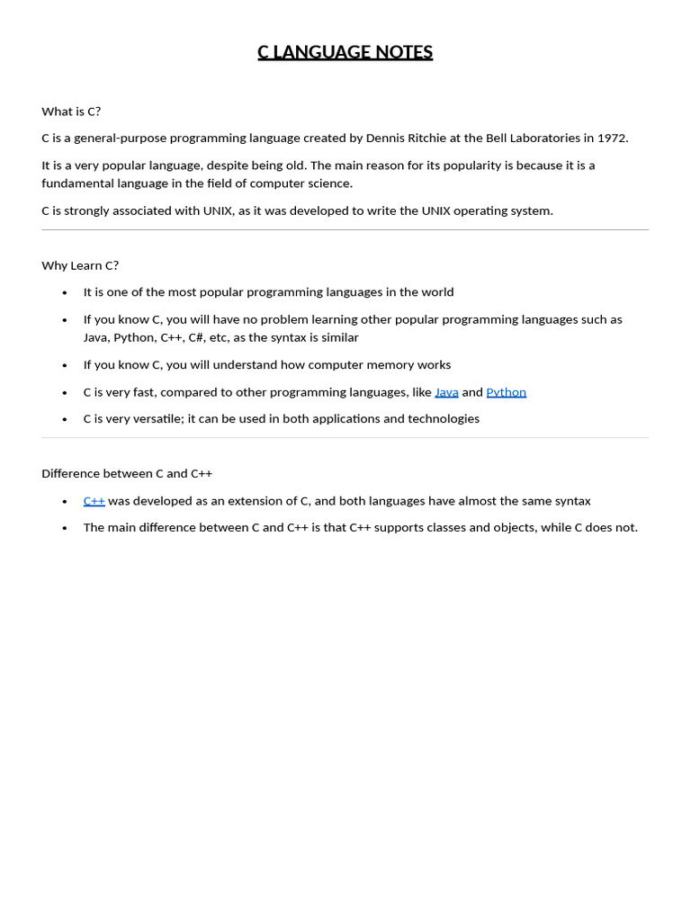 C LANGUAGE NOTES