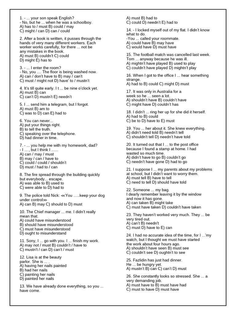 C) might / can D) can / could 14. - I locked myself out of my flat. I didn’t know