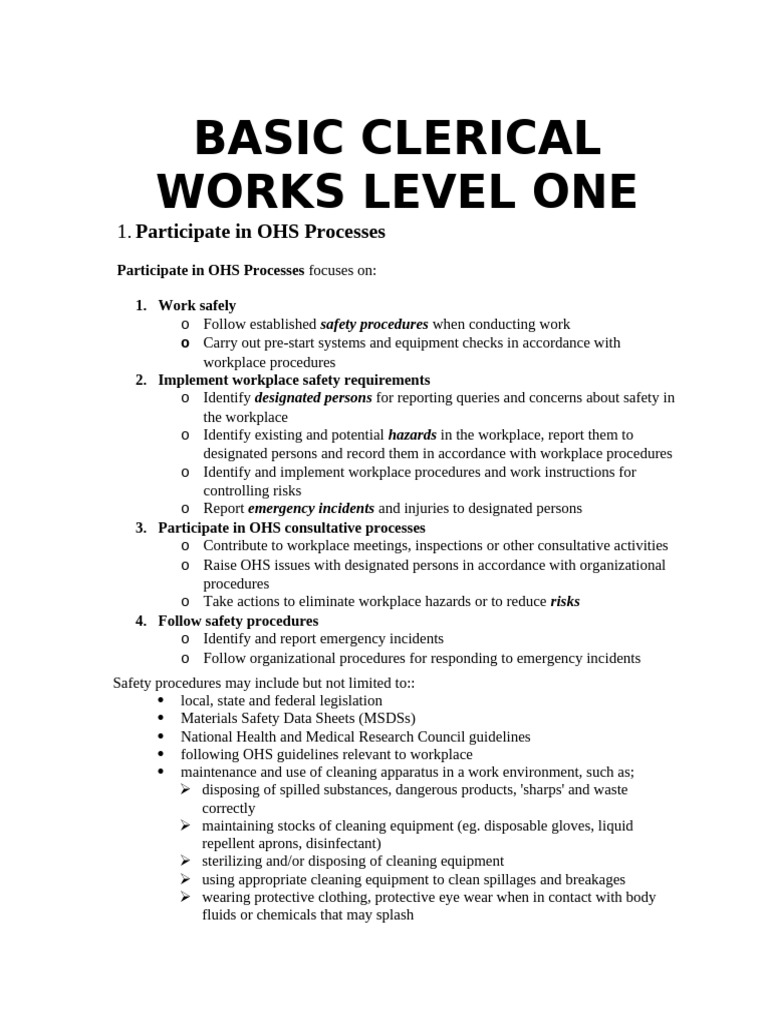 maintenance and use of cleaning apparatus in a work environment, such as;