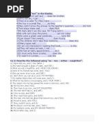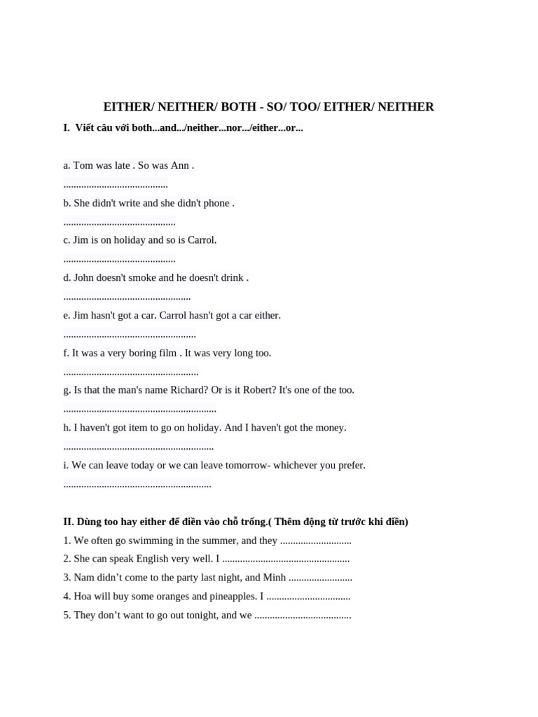 II. Dùng too hay either để điền vào chỗ trống.( Thêm động từ trước khi điền)