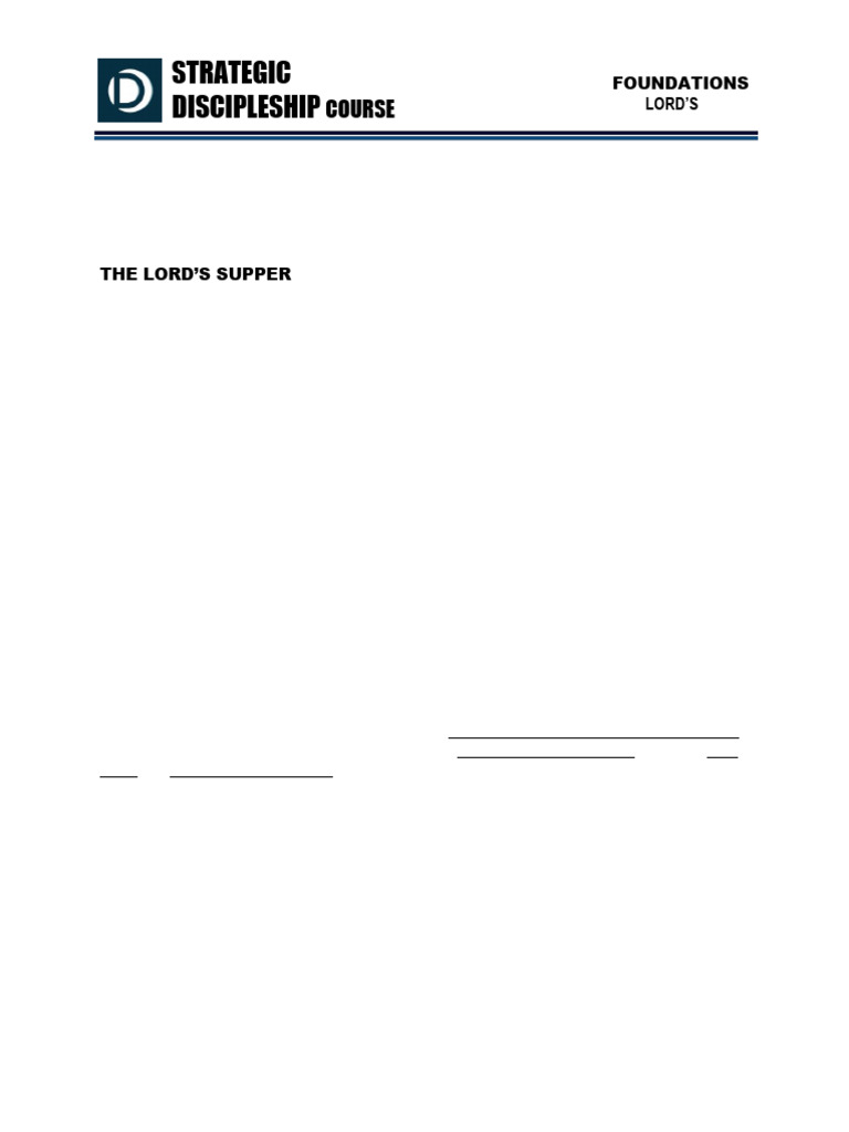 DISCIPLESHIP COURSE SESSION 8: THE LORD’S TABLE