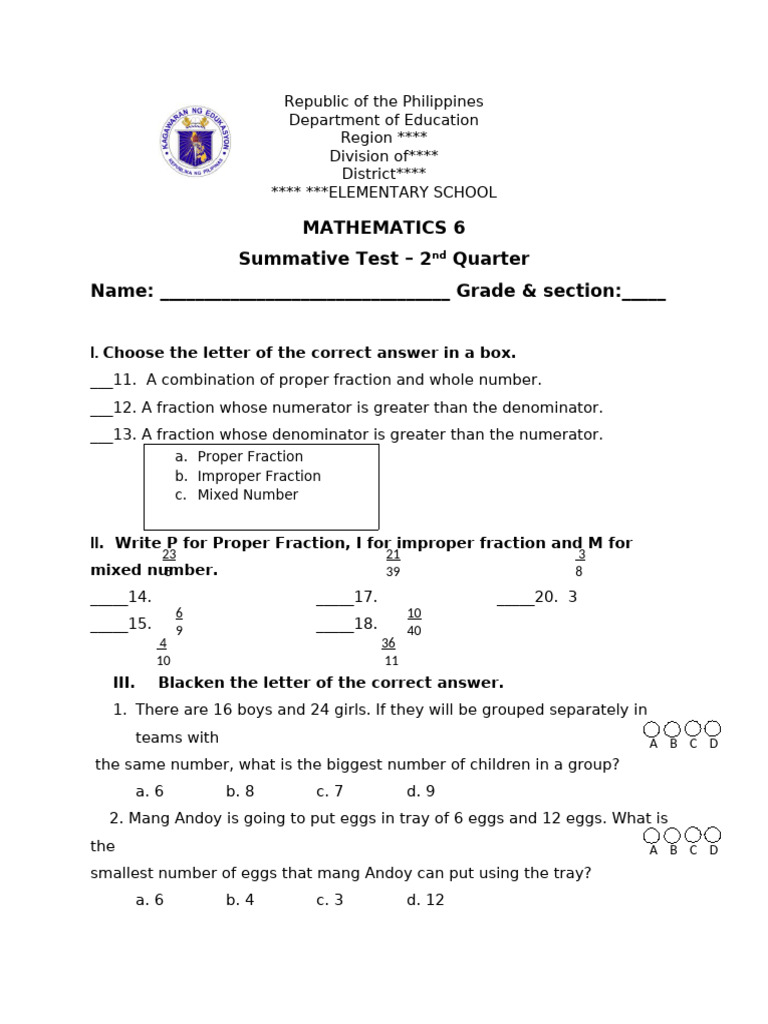 Summative Test – 2nd Quarter