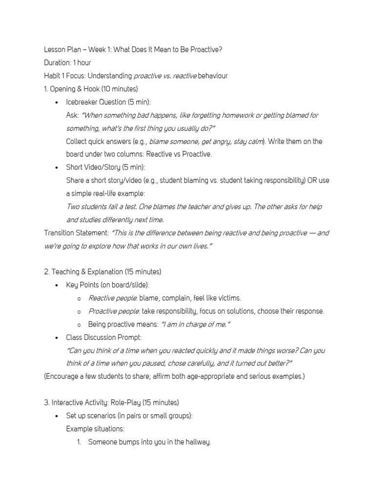 Lesson Plan – Week 1: What Does It Mean to Be Proactive?