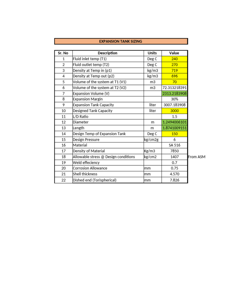18 Allowable stress @ Design conditions kg/cm2 1407 From ASME sec 2 Part D