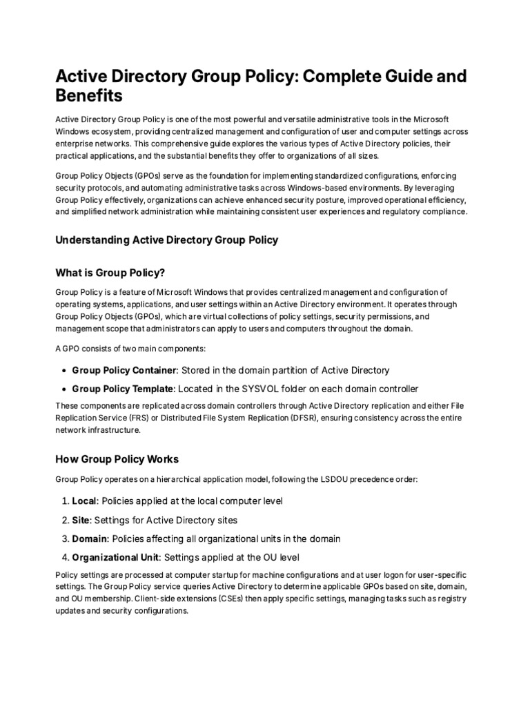 enterprise networks. This comprehensive guide explores the various types of Active Directory policies, their