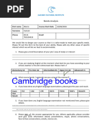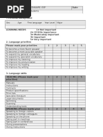 NEEDS ANALYSIS QUESTIONNAIRE: ESP Speciality: Receptionist