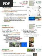 important activities. These include fur/hair, mammary glands, limbs and appendages, and teeth