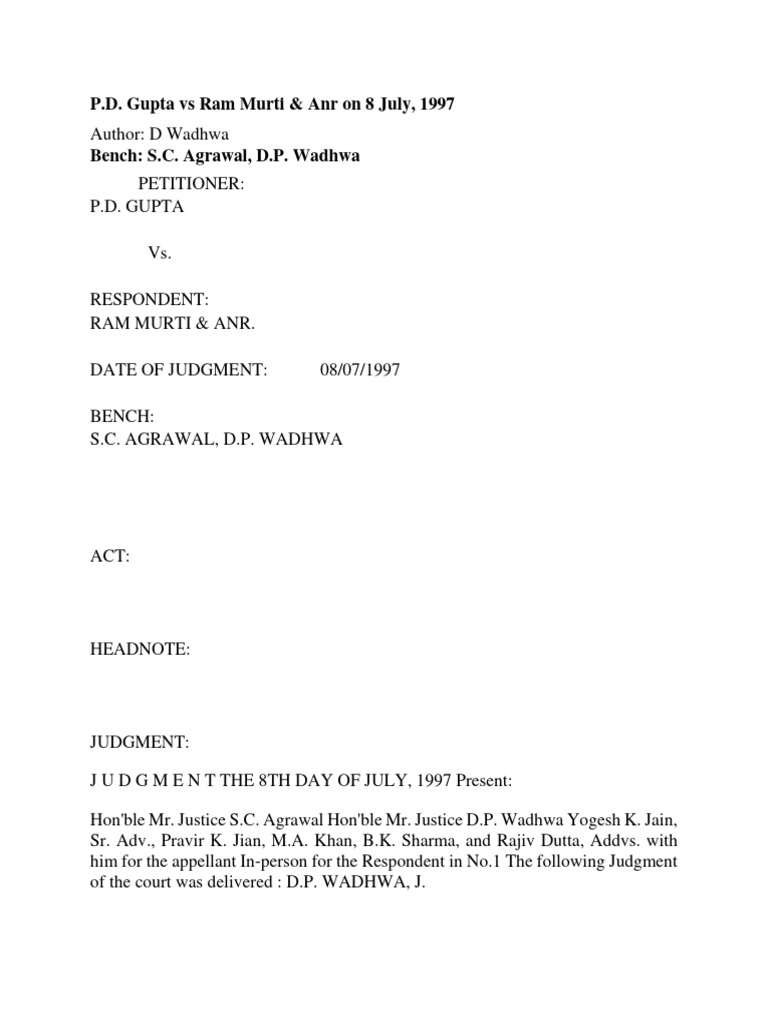 Gupta vs Ram Murti & Anr on 8 July, 1997