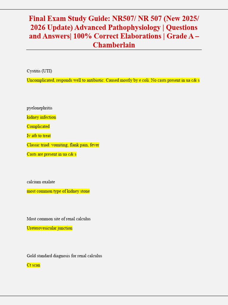Final Exam Study Guide: NR507/ NR 507 (New 2025/