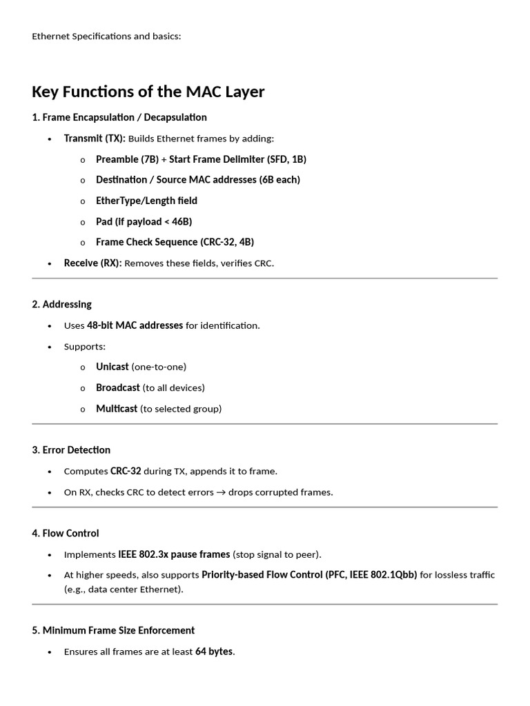 Ethernet Specifications and basics: