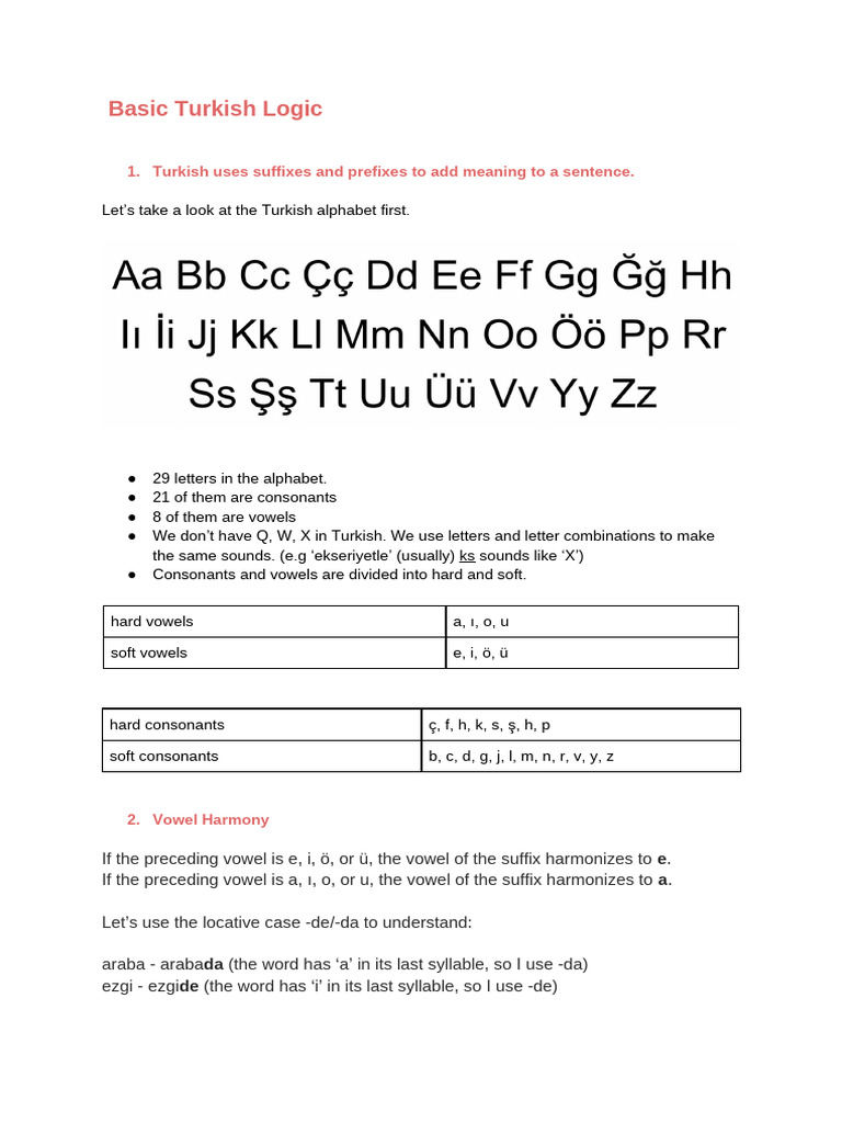 1. Turkish uses suffixes and prefixes to add meaning to a sentence.