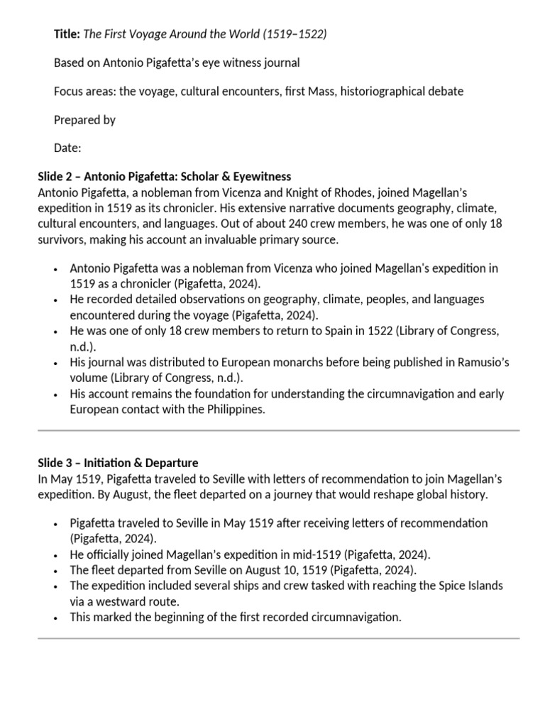 Slide 2 – Antonio Pigafetta: Scholar & Eyewitness