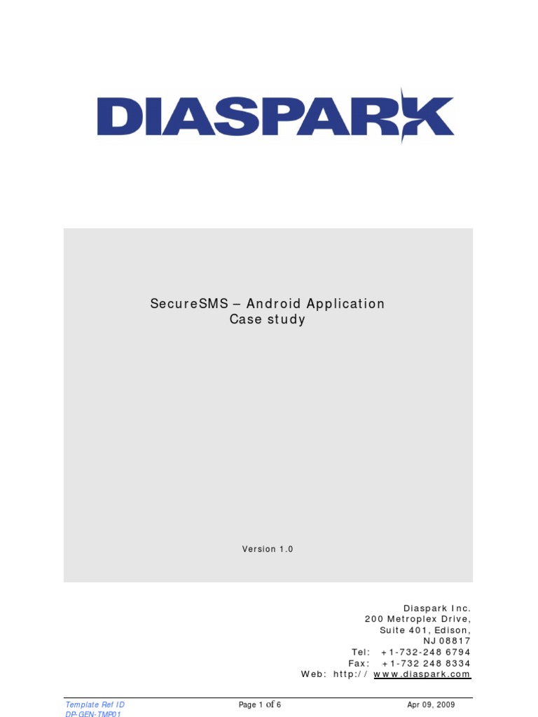 Diaspark Inc. 200 Metroplex Drive, Suite 401, Edison, NJ 08817 Tel: +1-732-248 6794 Fax: +1-732 248 8334 Web: http:// [Link]