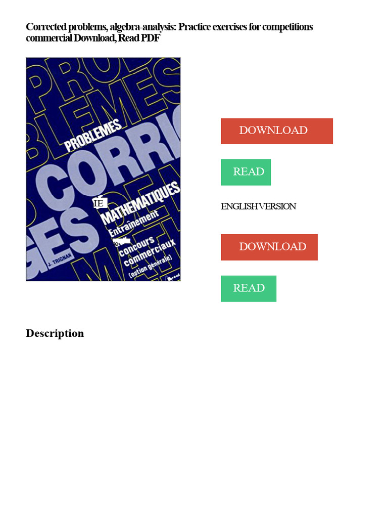 Course, methods and corrected exercises Course, exercises and. This 5th edition of the course Analysis