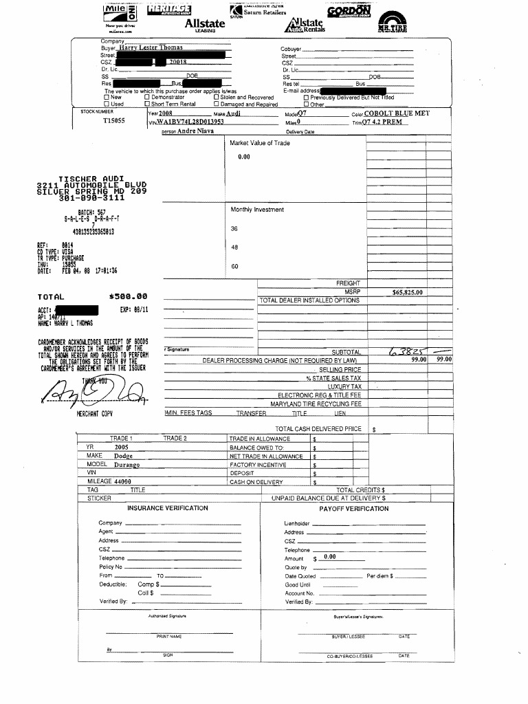 2008 Audi Purchase Order Details