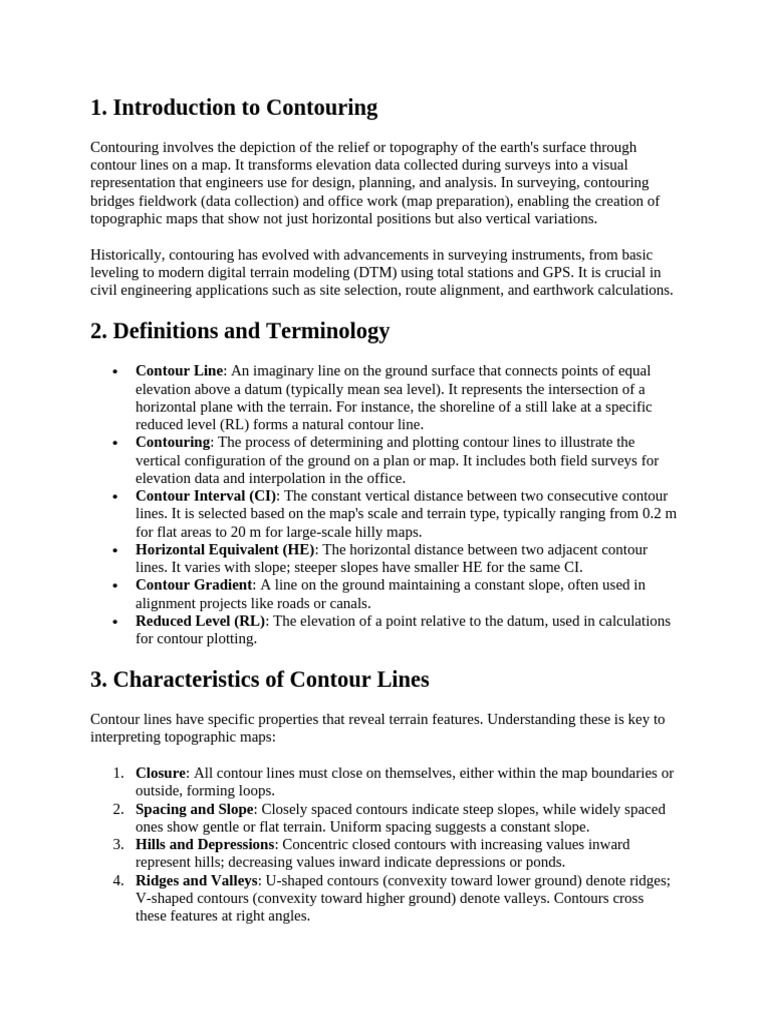 Contouring requires horizontal (plan position) and vertical (elevation) control. Methods are